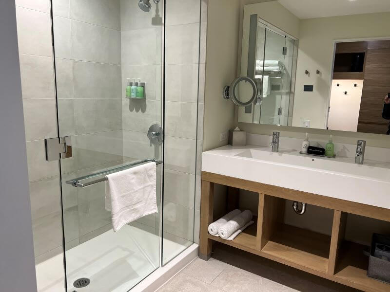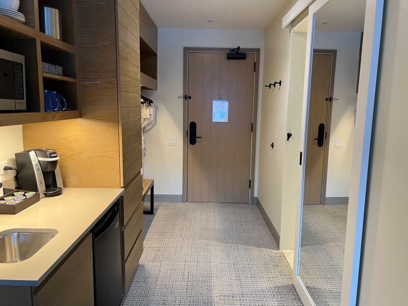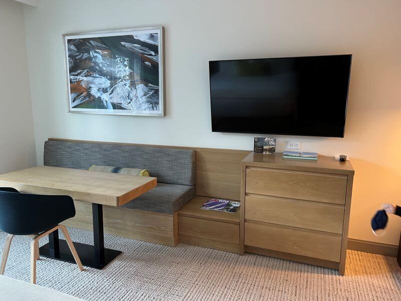 The rooms are spacious, with fully stocked kitchenettes, and easily accommodate dogs. From the dog goodies they give you when checking in, to the fact that dogs can sleep on the bed and be left in the rooms alone, this hotel is dog heaven. When traveling with a family and a dog, finding enough space to store things in a hotel room is always a challenge. However, this is not an issue at the Limelight. With hooks in the entry, a bench with shelves, under-bed drawers, and dressers — the storage is plentiful. Having an organized hotel room makes vacation so much more relaxing. If you’d like to learn about nine hotel hacks to keep your room organized, then read this post.